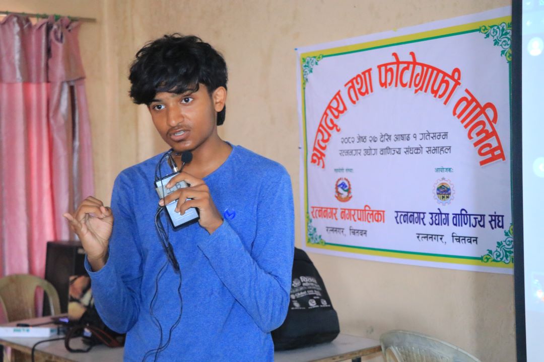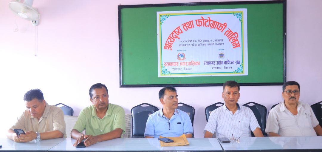 जेठ २७, चितवन । रत्ननगर उद्योग वाणिज्य संघमा श्रव्यदृश्य तथा फोटोग्राफी तालिम सुरू भएको छ । रत्ननगर नगरपालिकाको आर्थिक सहयोगमा संघले आयोजना गरेको उक्त कार्यक्रममा रत्ननगरका ३५ जना युवाहरुको सहभागिता रहेको छ । उद्घाटन कार्यक्रममा संघका अध्यक्ष शंकर गिरीले युवाहरुलाई सीप विकासमार्फत स्वरोजगार बनाउने र महिलाहरुलाई आत्मनिर्भर बनाउने उद्देश्यले चरणबद्धरुपमा तालिम सञ्चालन गरिएको बताए ।